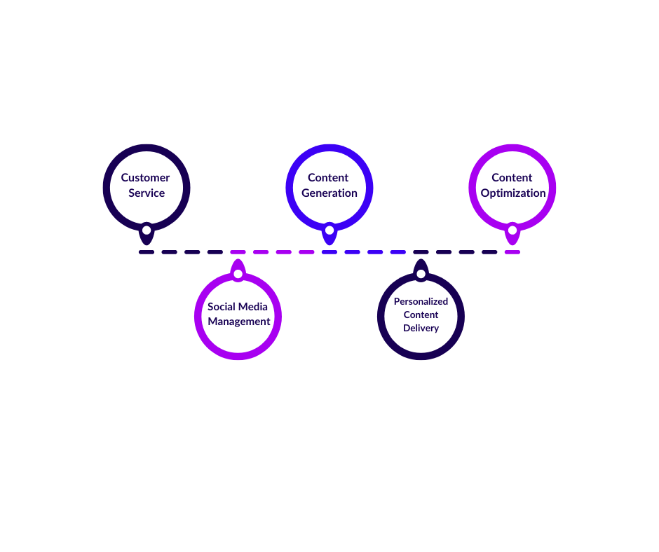 Before exploring the exciting possibilities of AI-powered content marketing, let’s examine its current state of play. Drawing from the collective wisdom of industry experts, we’ve identified five key domains where AI is being maximized to enhance content creation and distribution.