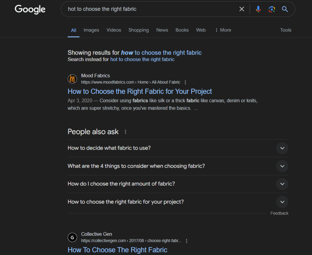 For example, if you google “how to choose the best fabrics”, generates this AI Overview generates this: